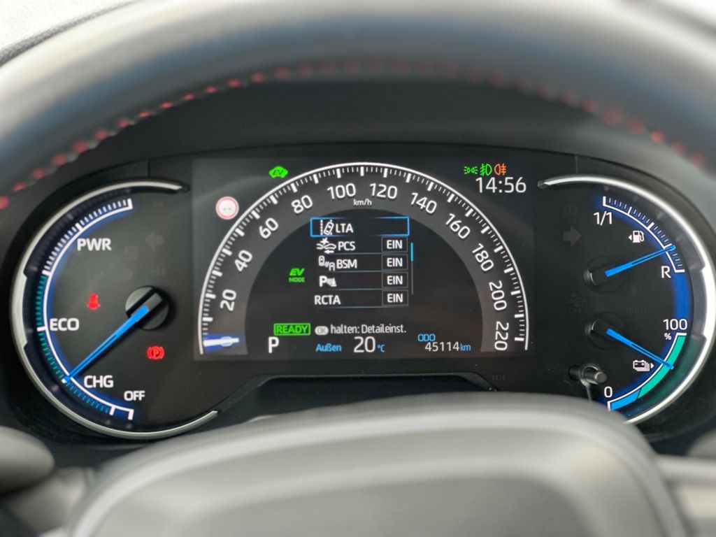 Sonderausstattung: - Metallic-Lackierung - - Weitere Ausstattung: - Ablagetasche an Beifahrersitzlehne, Airbag Beifahrerseite abschaltbar, Airbag Fahrer-/Beifahrerseite, Akustischer Fußgängerschutz (Außensound, AVAS), Anhänger-Stabilisierungs-Programm (TSC), Audiosystem: Multimedia Toyota Touch mit Rückfahrkamera, Autom. Begleitfunktion der Beleuchtung (Follow me home, FMH), Außenspiegel elektr. anklappbar, Außenspiegel elektr. verstell- und heizbar, Blinkleuchte in Außenspiegel integriert, Bremsassistent, DAB-Tuner (Radioempfang digital), Dachreling, Einparkhilfe vorn und hinten, Elektromotor vorn 134 kW / hinten 40 kW (Hybridantrieb), Fahrassistenz-System: Berganfahrkontrolle (HAC), Fensterheber elektrisch vorn + hinten, Heckleuchten LED, HV-Batterie (Lithium-Ionen), Innenspiegel mit Abblendautomatik, Isofix-Kindersitz-System, Karosserie: 5-türig, Klimaautomatik 2-Zonen, Knieairbag Fahrerseite, Kopf-Airbag-System, Kopf-Airbag-System 2.Sitzreihe, Kopfstützen vorn und hinten verstellbar, Lendenwirbelstütze Sitz vorn links, elektr. verstellbar, Lenkrad heizbar, Lenksäule (Lenkrad) verstellbar, LM-Felgen, Mittelarmlehne hinten mit Getränkehalter, Motor 2,5 Ltr. - 136 kW 16V Hybrid, Park-Assistent Intelligent Park Assist, Projektor-Scheinwerfer, Radstand 2690 mm, Reifen-Reparaturkit, Reifendruck-Kontrollsystem, Rücksitz geteilt, Rücksitz klappbar, Rücksitzlehnen neigungsverstellbar, Schadstoffarm nach Abgasnorm Euro 6d, Scheibenwaschdüsen heizbar, Scheibenwischerenteiser vorn, Schleudertrauma-Schutzsystem, Seitenairbag vorn, Sitz vorn links elektr. verstellbar, Sitz vorn links höhenverstellbar, Sitzheizung vorn, Smartphone-Integration x-connect (Apple CarPlay und Android Auto), Steckdose (12V-Anschluß) in Mittelkonsole, Toyota Safety Sense, Türgriffe außen Wagenfarbe, Verglasung hinten abgedunkelt, Warnanlage für Sicherheitsgurte hinten, Warnanlage für Sicherheitsgurte vorn, Wärmeschutzverglasung getönt - -